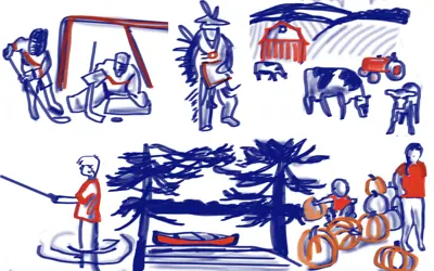 A design by long-time resident Ellen Cowie will appear on a 24-foot by eight-foot mural. She is also deeply connected to the farming, sporting, Indigenous and artistic communities – all themes represented in her design. She moved to Keene from Peterborough in 2019 and is delighted to be part of this project.